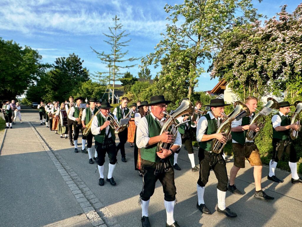 Haisterkirch – Am Abend des Muttertags (12. Mai ) lockten blasmusikalische Klänge so manche Einwohner in der Ortschaftsmitte von Haisterkirch aus ihren Wohnungen und die staunten nicht schlecht, als da die Haisterkircher Musikkapelle in großer Besetzung und schmucker Tracht vorbeimarschierte. Mit dem Muttertag hatte dies wohl nichts zu tun, denn dies wäre ja eher morgens erfolgt.