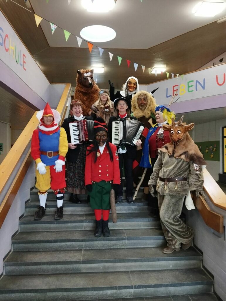 Reute – Die Ehrengildemeisterin Sonja Münsch besuchte gemeinsam mit einigen Maskenträgern der Narrengilde Reute die zweiten Klassen der Durlesbachschule. „Wa muinet’r?“ lautete die Frage in den Klassenzimmern – und die Schüler antworteten selbstverständlich richtig: „Ha wellaweag.“