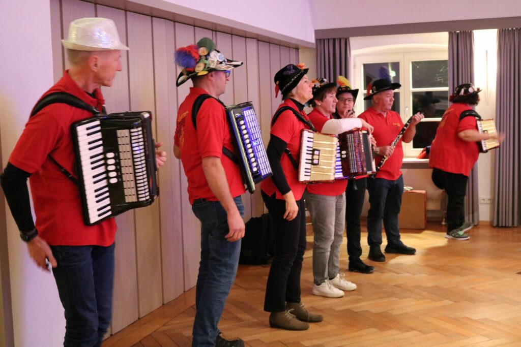Gildeschreiber Basti Baur stellte den Sprungplan sowie den Terminkalender vor: Besonders vorgemerkt sind die „Goißawäsch“ am 10. Januar sowie das große Umzugswochenende vom 6. bis 8. Februar 2026. Für Stimmung sorgte anschließend die Schnurrermusik.