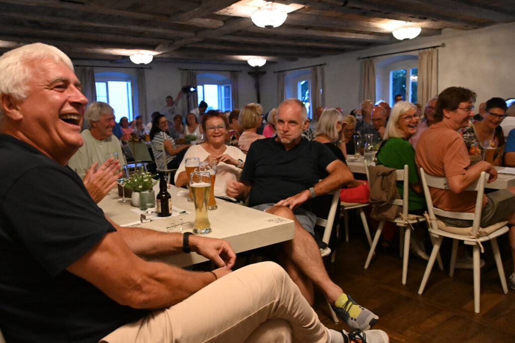 Mayerhofer ist es auch, der nicht nur am Schlagzeug den Rhythmus vorgibt, sondern auch bekannt eloquent und vor keinem Kalauer zurückschreckend durch den Abend moderiert, das Publikum aufheizt und mit dem einen und anderen Trinkspruch auch für Umsatz im Bräuhaus sorgt.