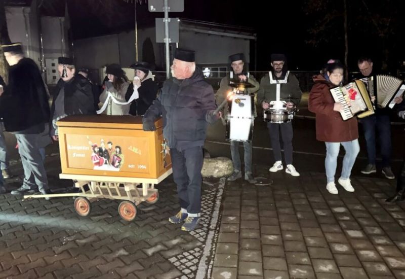 Bad Waldsee – Fasnetsdienstag am Abend. Waldsees Narren haben den Aschermittwoch vor Augen. Das Ende der Fasnet. Ein frühes, ja vorzeitiges, ein schmerzliches Ende. Punkt 19.00 Uhr setzt sich der Trauerzug für die verblichene Fasnet in Bewegung. Schmerzvoll bläst die Posaune ihr „O jerum“, während der Trommler den langsamen Takt vorgibt. Bei den obligatorischen Halten vor aktuellen und ehemaligen Wirtshäusern erklingt die traditionelle Frage: „Sind’r au scho im Dreikönig gwäa?“ – „Überall, bloß do noit“, antwortete die Trauergemeinde – wie es Brauch und Sitte vorgeben.