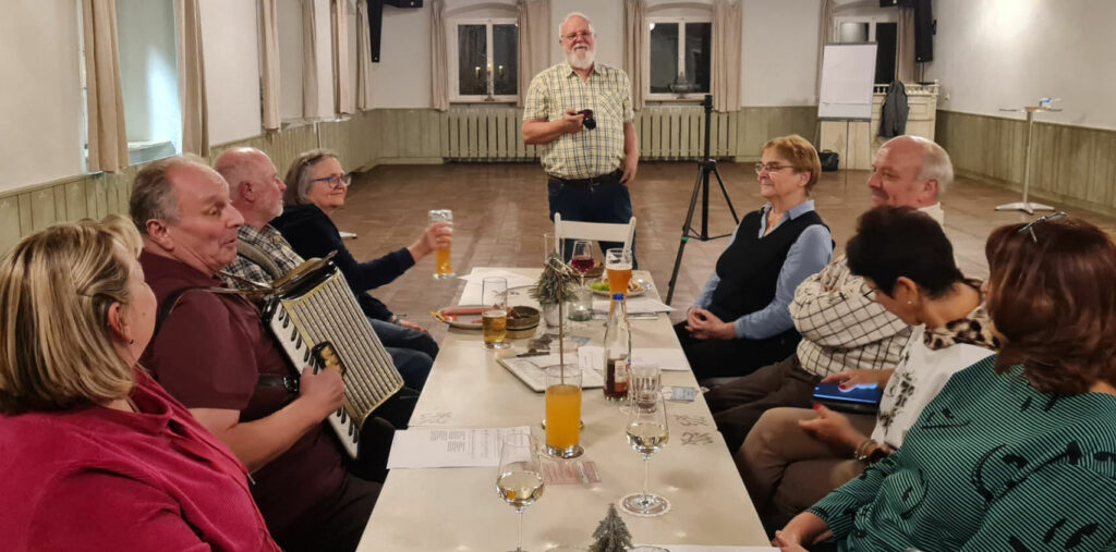 Der Stimmung tat dies bei den Anwesenden keinen Abbruch. Gemeinsam wurde aus voller Brust und/oder mit einer derartigen Inbrunst gesungen, dass es im Bräuhaussaal nur so hallte. Teilweise begleitet von Akkordeon- und Trompetenklängen, . “Grad schee wars!”. Alles in allem entwickelte sich die Sache zu einem mehr als netter Abend.