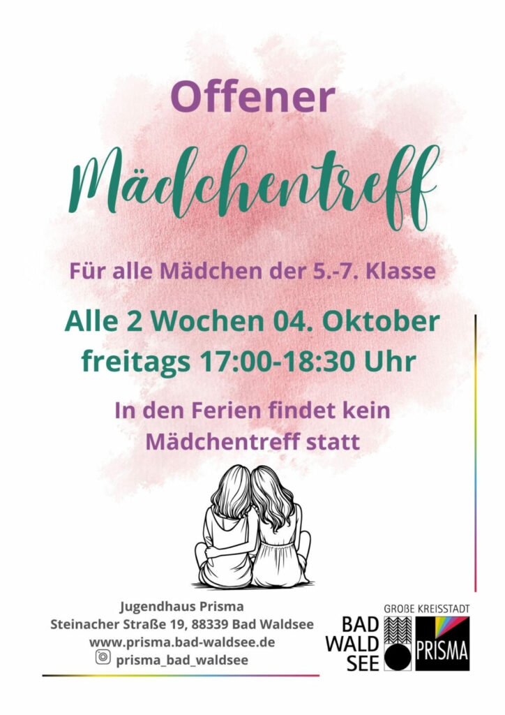 Kontakt: Jugendhaus Prisma, Steinacherstr.19, 88339 Bad Waldsee, www.prisma.bad-waldsee.de