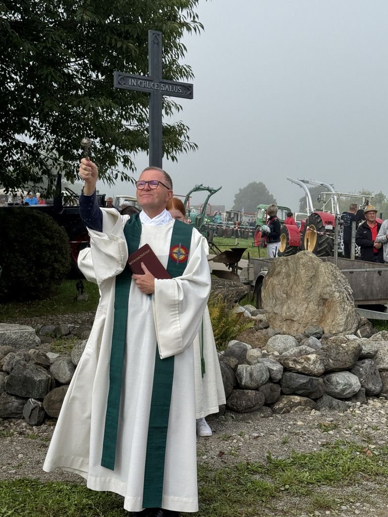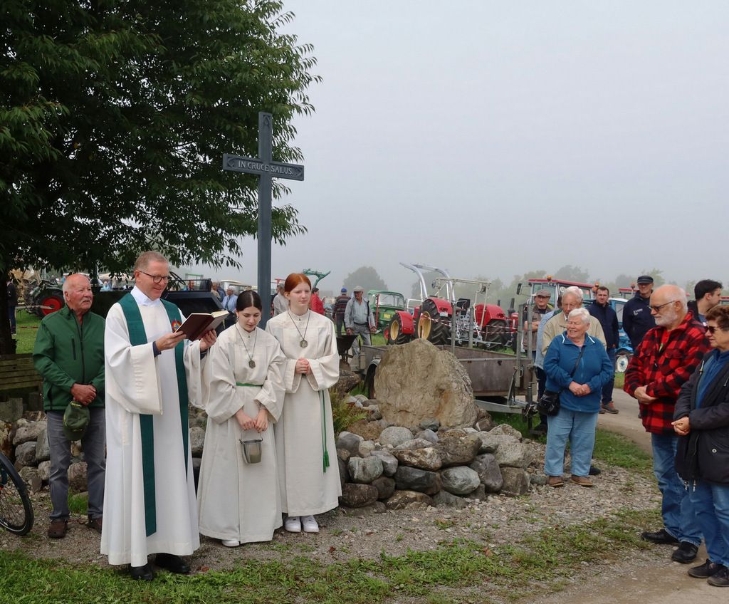 Nach dem Gottesdienst begaben sich die Gottesdienstbesucher zum Oldtimer-Feldkreuz. Dort erbat Pfarrer Thomas Bucher für alle Gekommenen den Segen Gottes.