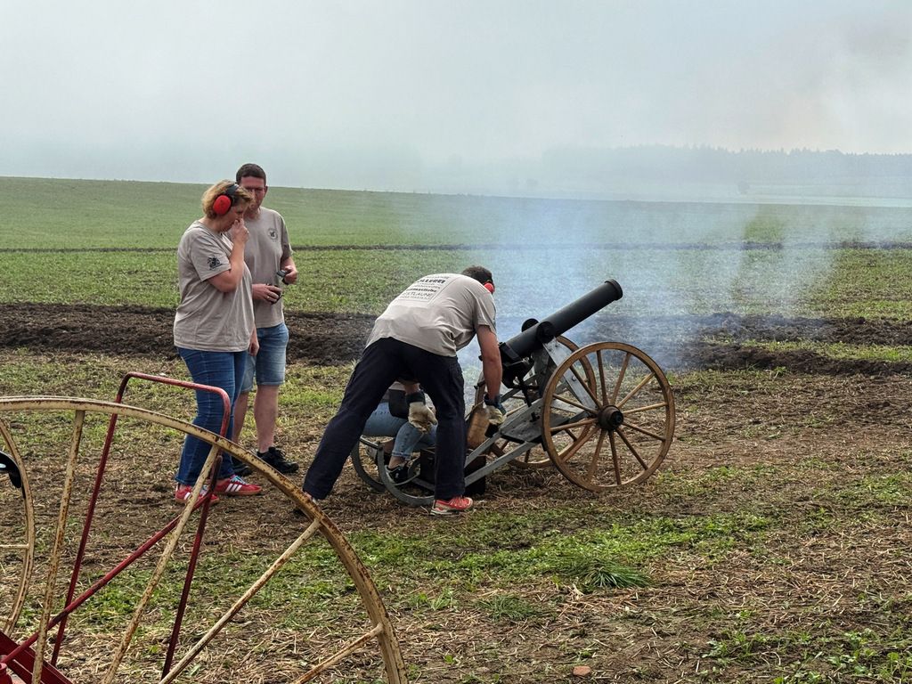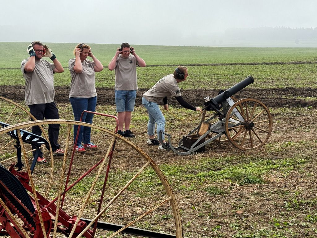Danach ging es so richtig los, zuerst mit den Böllerschüssen eines Quartetts der Michelwinnader Kanoniere und dann folgte das Geknatter und Rauschen von Fahrzeugkolonnen mit Traktoren und Oldie-Fahrzeugen aller Art aus allen Himmelsrichtungen. Die 900 Fahrzeug-Anmeldescheine, von Ingrid Priebe erstellt, reichten gerade aus.