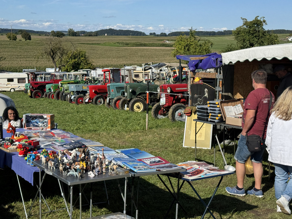 Gekommen waren Oldtimerfreundinnen und Oldtimerfreunde mit Traktoren, Autos, zweirädrigen Motorfahrzeugen nicht nur aus dem Nahbereich, sondern aus dem ganzen süddeutschen Bereich, auch aus dem angrenzenden Ausland. Schon am noch regennassen Freitagabend trafen Oldtimergruppen ein, die sich in der Campingzone ihre Plätze sicherten und am unterhaltsamen Abendprogramm bei Lagerfeuer, Live-Musik und Gesprächsrunden erfreuten. Die Bar „Oldtimer-Tanke“ war schon geöffnet.