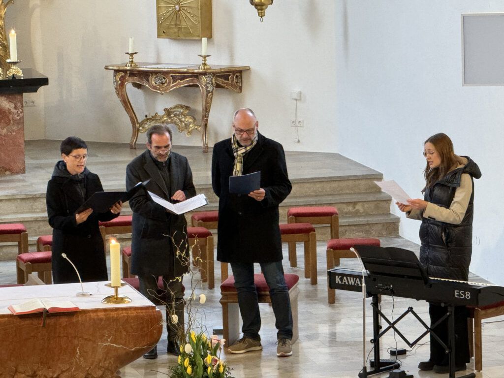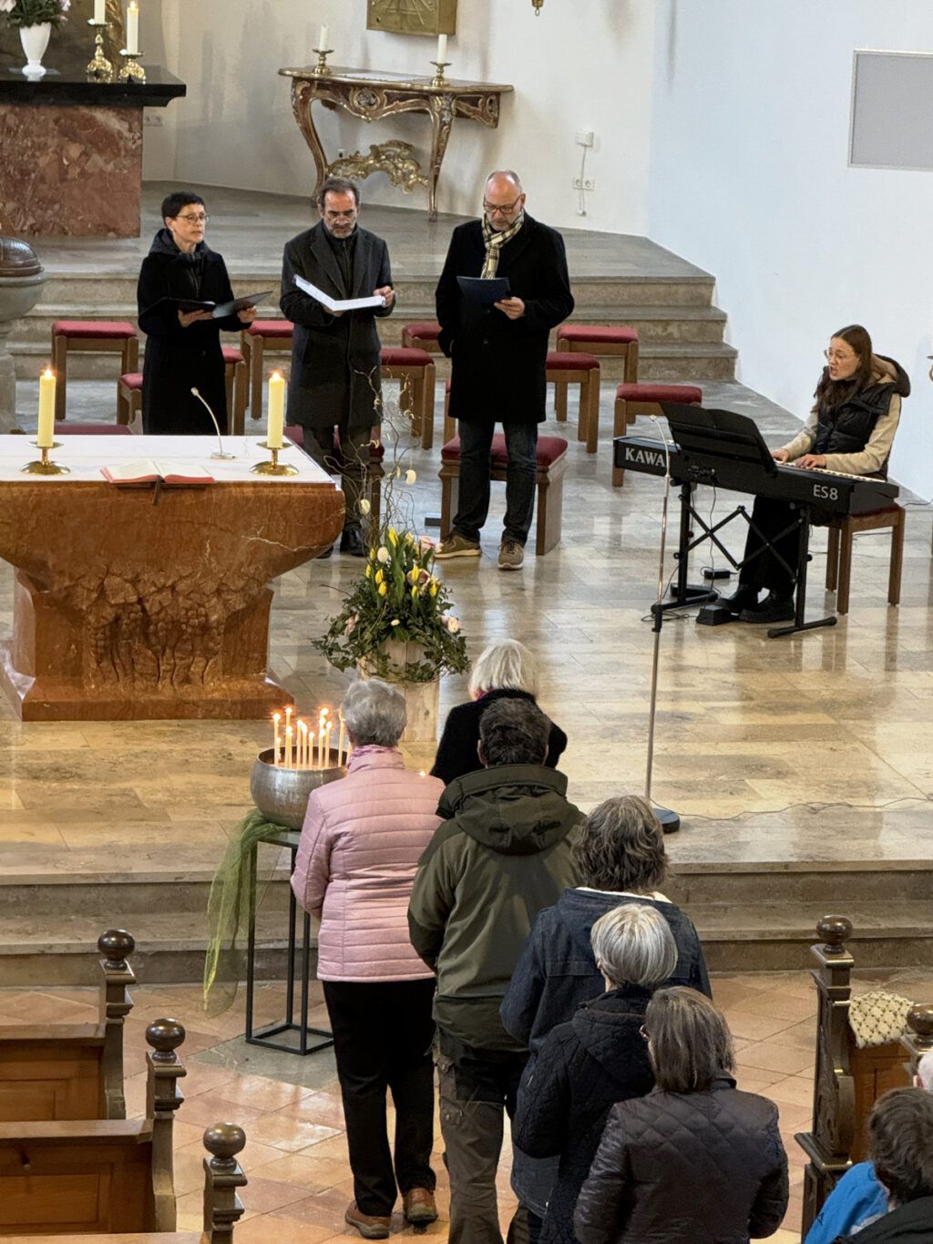 Am Ostersonntag beim “Abendimpuls” um 18.00 Uhr waren in der Pfarrkirche von Haisterkirch die Reihen eher gelichtet. Aber all die Gekommenen durften sich freuen über die Gebete, Lesungen und den Gesang eines Quartetts mit Verena Westhäußer, Pfarrer Stefan Werner und dem Ehepaar Winstel. Die Verinnerlichung der “Auferstehung des Herrn” wurde so beeindruckend und nachhaltig übermittelt.