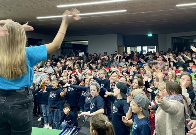 Bergatreute – In wochenlangem, intensivem Proben unter der Regie von Musiklehrer Karsten Maluck, der die Veranstaltung federführend plante und organisierte, hatten sich die Schülerinnen und Schüler aus Primar- und Sekundarstufe der Gemeinschaftsschule Bergatreute auf den großen Abend vorbereitet – am Donnerstag war es nun so weit: Schulleiter Andreas Reichle begrüßte als Hausherr mehr als 500 gespannte Gäste, die sich pünktlich um 18 Uhr im Atelier des Neubaus eingefunden hatten.