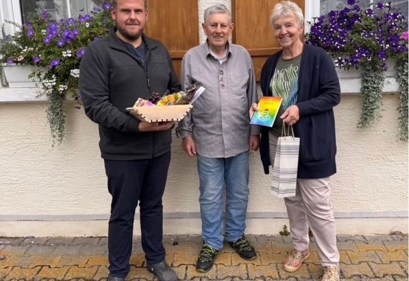 Haisterkirch – Am 27. Juli 2025 feierte Viktor Schad seinen 80. Geburtstag. Zu diesem besonderen Anlass überbrachte Ortsvorsteher Matthias Covic dem Jubilar bei einem persönlichen Besuch am 5. August die herzlichsten Glückwünsche im Auftrag von Oberbürgermeister Matthias Henne. Verbunden mit den Glückwünschen übergab er einen regionalen und fair gehandelten Geschenkkorb und eine Glückwunschkarte der Stadt Bad Waldsee. Ebenfalls als Gratulantin war Marianne Ploil vom Seniorenteam mit dabei.