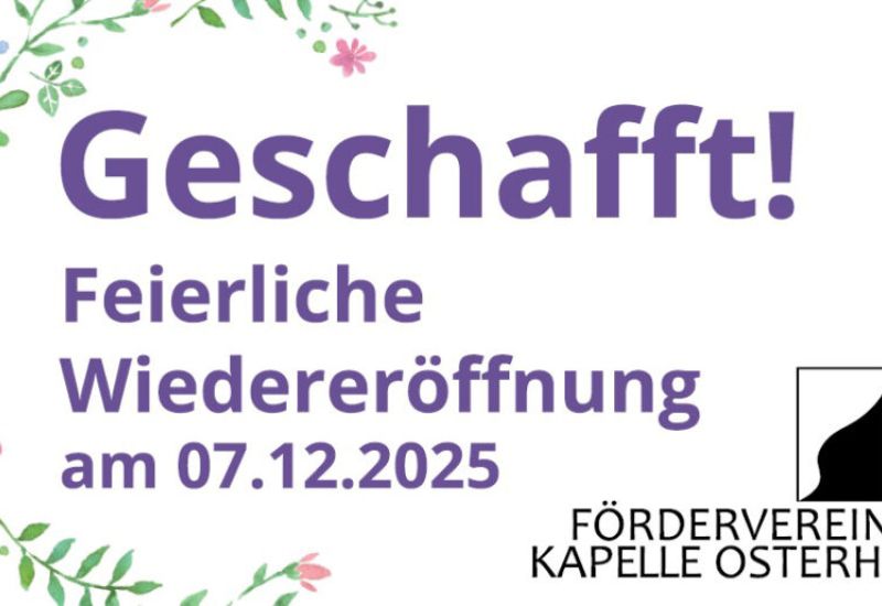 Am 7. Dezember wird die Kapelle Osterhofen wiedereröffnet