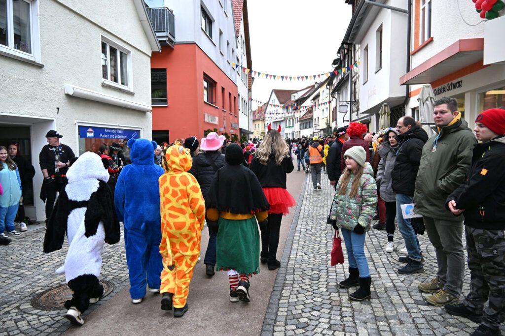 Den krönenden Abschluss bildeten die Waldseer selbst: Narrensamen, Schorrenweible, junge und ausgewachsene Schrättele, Federele, Narro und Faselhannes und das Sammlervölkle mit Musik verwandelten die Stadt endgültig in eine Narrenhochburg.