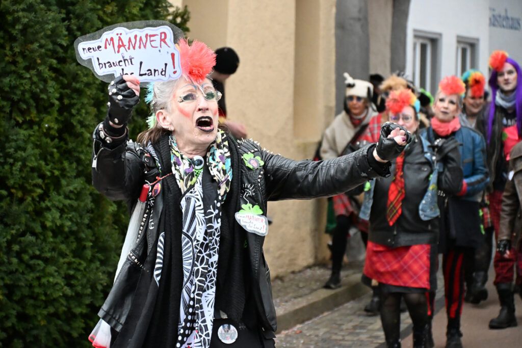 Am Fasnetsmeetig waren einige närrische Gruppen wieder ganz vorne dabei. Die Bachrälle gingen auf Expedition ins Steinacher Ried, der Gemeine Rat wurde standesgemäß von den feinsten irischen Butterstücken eskortiert, und die gut gelaunten Schafe folgten der Reise ins Nimmerland – gute Überfahrt und warme Wolle! „Waldsee Auswärts“, glückselige Mutter-Kind-Schafe, ein keltischer Clan, die Adlergass-Rälle und Shetlands „Rock-You“-Schafe rundeten den tierisch guten Reigen ab.