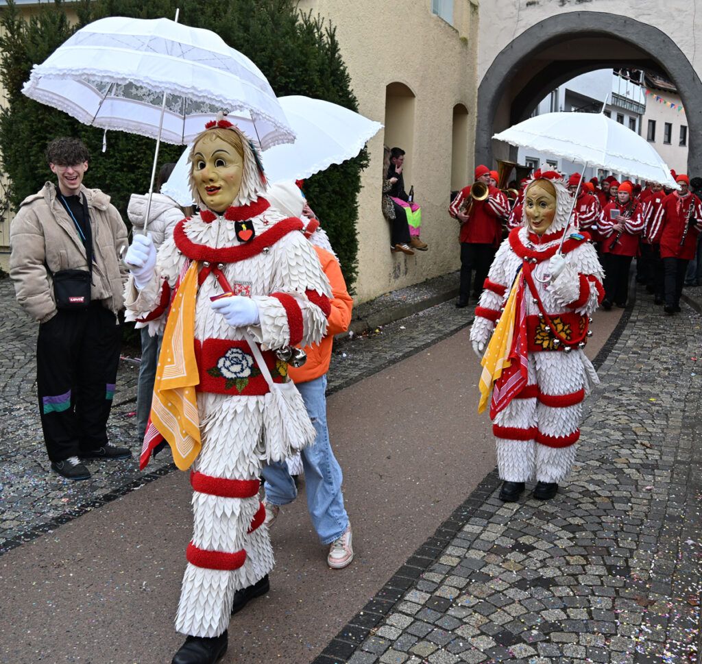 Die Altdorf-Weingartener Plätzerzunft antwortete mit „Breisgau-Ofenloch“. Besonders beeindruckend: die historischen Plätzler mit ihren Larven aus Drahtgewebe – unerkannt, aber mit freier Sicht. Die Lauratalgeister weinten sich stilecht durch den Umzug, während die Plätzlejugend bereits fleißig das Karbatschen-Schnellen übte. Waldweible, Wurzelsepp und Schlösslenarren waren natürlich ebenfalls mit von der Partie.