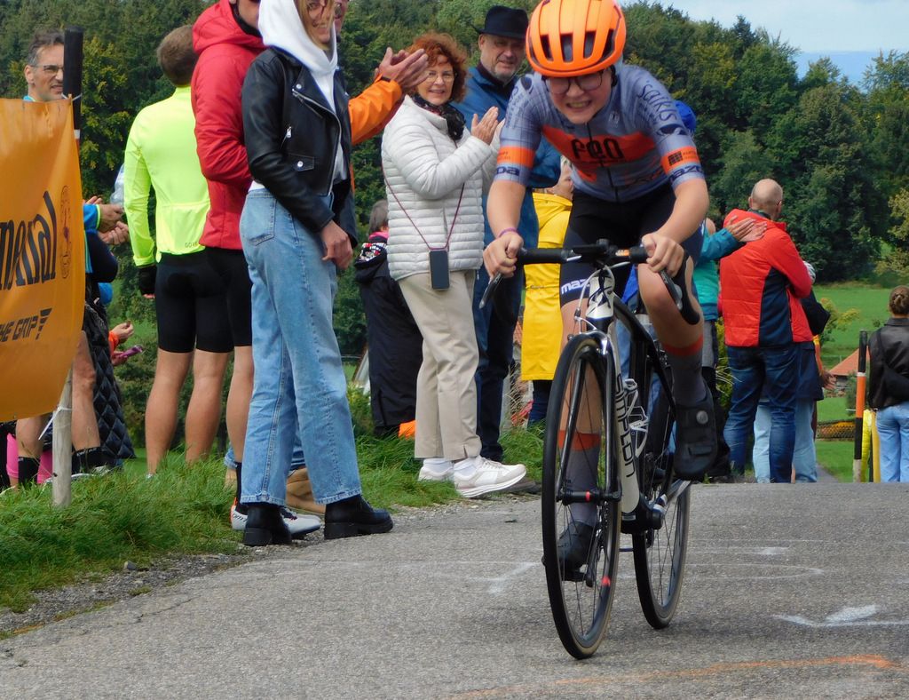 Jede Fahrerin und jeder Fahrer wurde mit anerkennendem Beifall beklatscht. Der Applaus schwoll an bei den jüngsten und vor allem bei den ältesten teilnehmenden Radsportbegeisterten. Richtig bejubelt wurde die älteste Teilnehmerin Lydia Ettenhofer, als sie lächelnd an der großen Zuschauerkulisse vorbeifuhr.