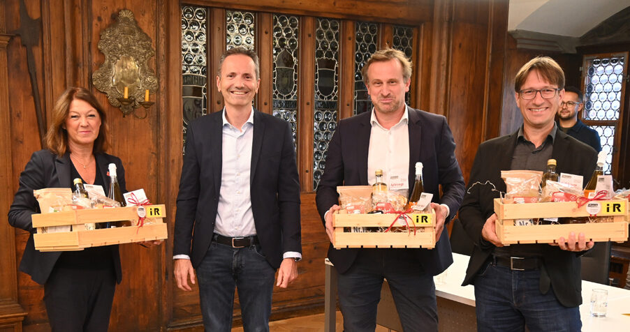 Geehrte und die Ehrende (von links): Bürgermeisterin Monika Ludy, Karlheinz Bayer (Geschäftsführer i+R), Jörg Sigmund von Sigmund Landschaftsarchitekten, Albrecht Reuß von citiplan