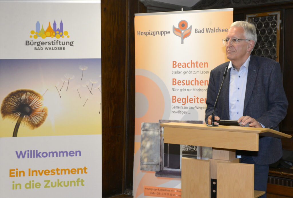 Der Vorsitzende der Bürgerstiftung, Matthias Haag, begrüßte die Gäste und führte ins Thema ein. Bürgermeisterin Monika Ludy, der das Projekt sehr am Herzen liegt, richtete ebenfalls Worte an die Anwesenden: „Wie wir als Gemeinschaft mit dem Lebensende umgehen, sagt sehr viel darüber aus, wie menschlich unsere Stadt ist.“ Sie hob hervor, dass das Projekt Fachkräfte, Ehrenamtliche und Angehörige zusammenbringt, „um Strukturen zu schaffen, die Menschen am Lebensende nicht allein lassen“.