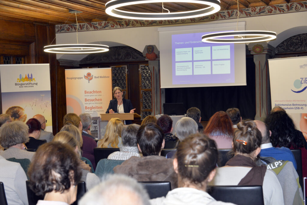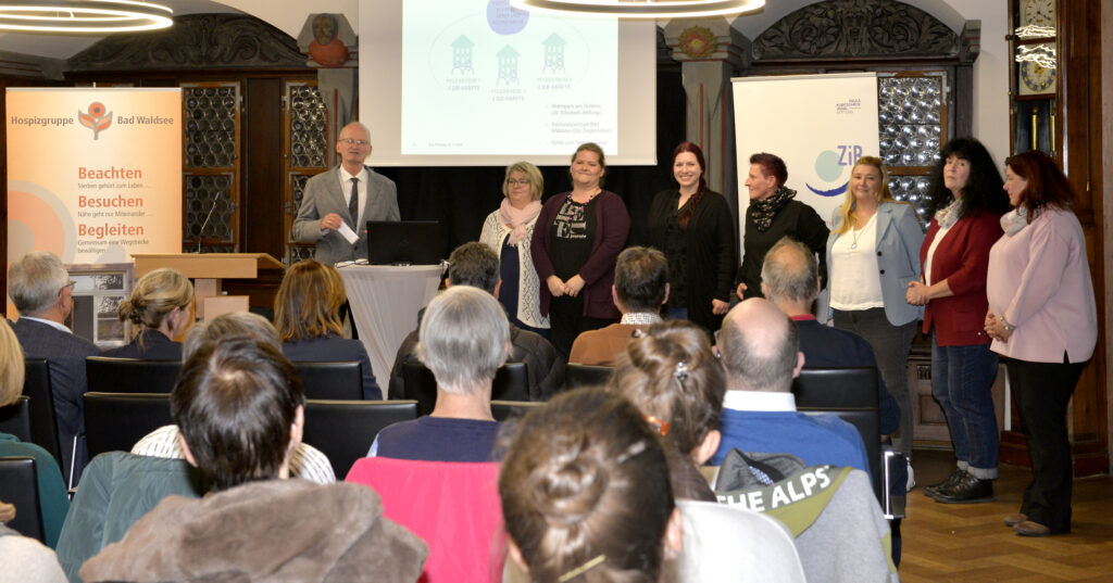 Bad Waldsee – Mit großer Beteiligung fand am Donnerstagabend, 6. November, im Historischen Rathaus die Auftaktveranstaltung für das Projekt zur verbesserten palliativen Versorgung „Zeitintensive Betreuung im Pflegeheim“ (ZiB-P), in Bad Waldsee statt. Vertreterinnen und Vertreter aus Pflege, Medizin, Hospizarbeit, Ehrenamt und Stadtverwaltung kamen zusammen, um den offiziellen Start eines Projekts zu feiern, das schwerkranken und sterbenden Menschen mehr Zuwendung, Zeit und Würde schenken soll.