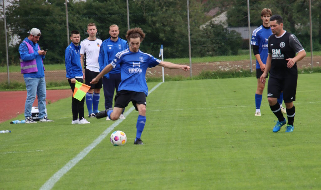 Nach der schwungvollen Anfangsphase nahmen beide Seite etwas das Tempo aus dem Spiel und agierten zunächst auf Sicherheit. Kevin Kraus hatte auf Reutener Seite im ersten Durchgang zweimal die Führung auf dem Schlappen, doch der Ball strich einmal knapp links und das andere Mal rechts am Bad Waldseer Tor vorbei. Torlos ging’s schließlich in die Halbzeitpause bei bestem Fußballwetter, nachdem am Tag zuvor noch brütende Hitze geherrscht hatte.