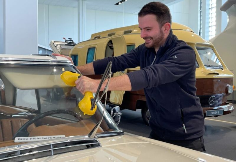 Reparatur und Austausch einer Frontscheibe im Pkw und Reisemobil am Donnerstag, 21. März, 19.00 Uhr in der Museumswerkstatt. Die Teilnahme ist kostenlos!