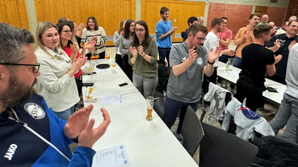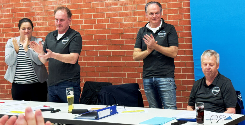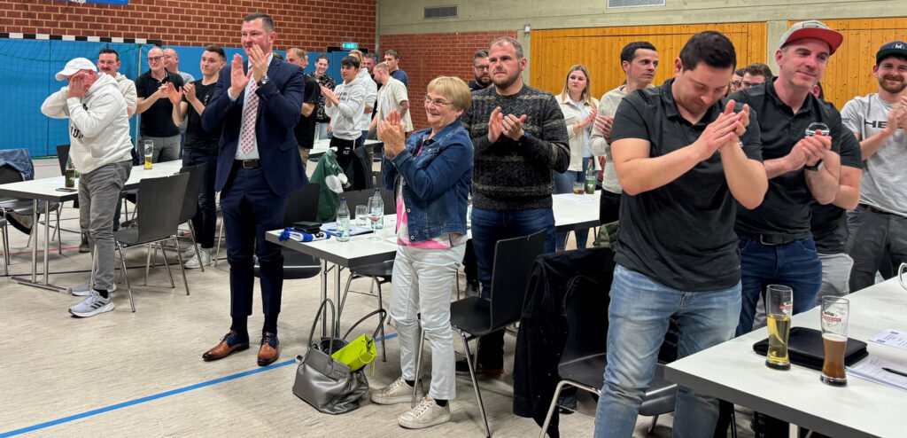 Die Liste des Erreichten in dem langen Zeitraum ist beachtlich, sei dies bei bautechnischen, sportlichen und gesellschaftlichen Maßnahmen und Veränderungen. Am Ende von Roland Braigs Ausführungen erhoben sich alle Anwesenden spontan von ihren Plätzen und spendeten kräftigen, langanhaltenden Applaus. Zuvor hatte er allen Helferinnen und Helfern gedankt. Insbesondere bedankte er sich namentlich stellvertretend bei all jenen, die ihm über zwei Jahrzehnte hinweg in besonderer Weise zur Seite standen. Das waren sein Vize Andreas Welte, Geschäftsführer Dietmar Hund, die Breitensport-Abteilungsleiterinnen Bettina Stauder-Bitterwolf und Carmen Lang, Schriftführer Bernd Stehle und der „Herrscher über den grünen Rasen“ Ingo Sontag.