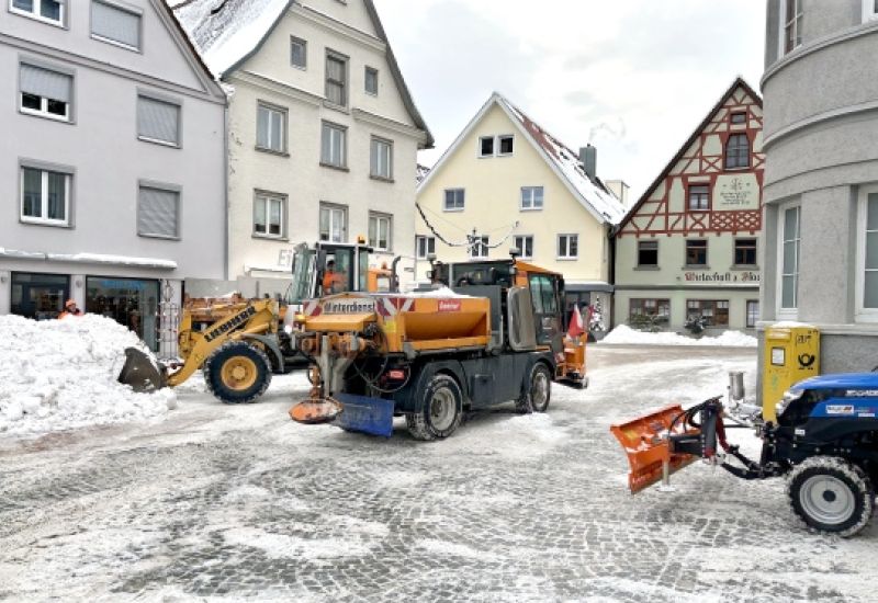 Bad Waldsee – So schneereiche Tage wie die vergangenen bringen eine schöne und ruhige Stimmung in die Stadt. Aber sie bringen auch jede Menge Arbeit, denn der viele Schnee muss von den Gehwegen und Straßen geräumt werden.
