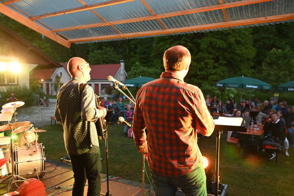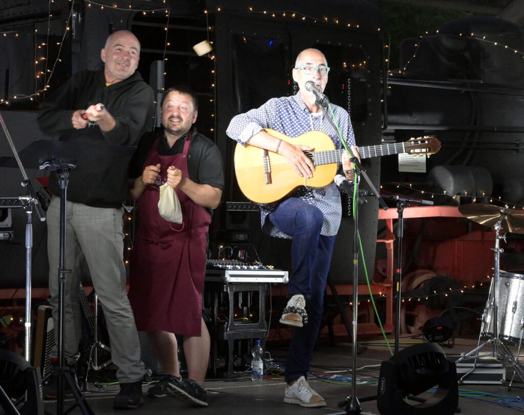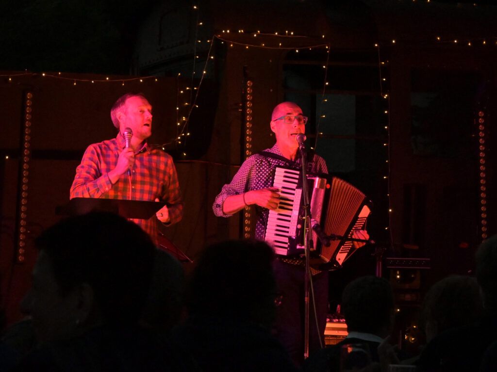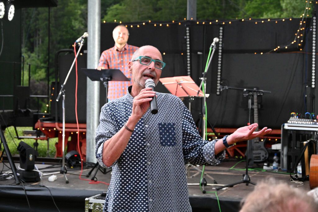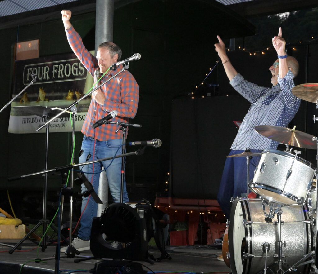 Bad Waldsee – Zusammen mit Spektrum K brachte der Bähnlesverein am Samstagabend (31.5.) „Let’s schwätz schwäbisch“ auf die Bühne am Durlesbacher Eisenbahndenkmal. Mit Barny Bitterwolf und Wolfgang Heyer waren zwei herausragende Vertreter der schwäbischen Mundart am Werk und mit den „Four Frogs“ eine neu formierte Band „alter Hasen“, die bekannten Ohrwürmern aus den sechziger bis achziger Jahren mit schwäbischen Texten ein neues Leben einhauchen.