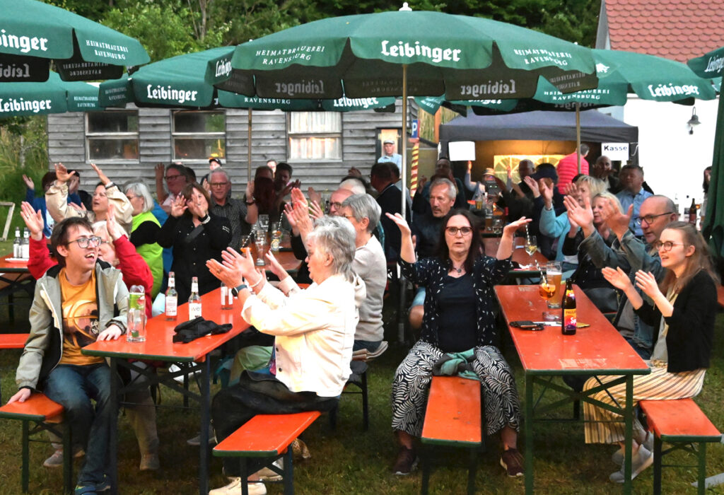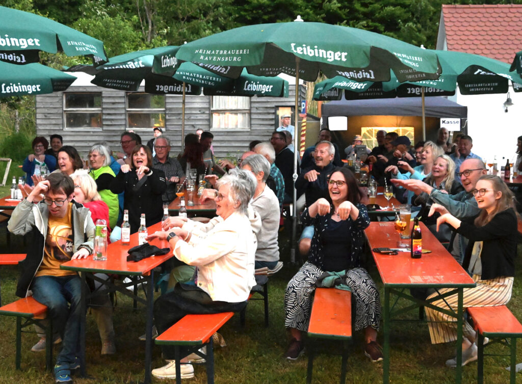 Zwischendurch schaute Karsten Arndt, Vorsitzender des Vereins und Organisator des Spektakels, sorgenvoll an den Himmel, denn schwarze Wolken verhießen zunächst nichts Gutes. „Was da hinten aus Richtung Aulendorf kommt, zieht meistens vorbei“, sprach er sich selbst Mut zu. Und der wurde belohnt: Das Open-Air am Samstagabend war von außen trocken bis zum Schluss.