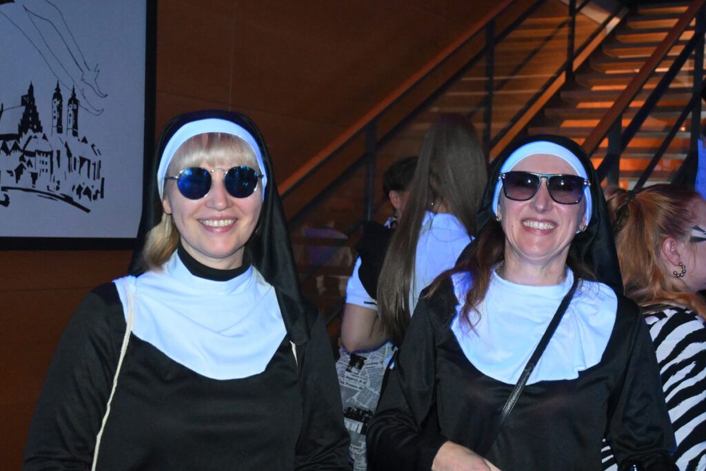 Frankensteins Braut hatte sich eine schwarze „Ziernaht“ quer durchs weiß geschminkte Gesicht gezogen. Eine Regisseurin im schwarzweißen Ringelhemd klapperte mit der Filmklappe. Mafiosi mit Hut, weißem Hemd und schwarzen Hosen traten gruppenweise in Erscheinung. Engel, Nonnen, Pfarrer, weiße und schwarze Federboas, Vampire, ein Zeitungsanzug und ein T-Shirt „Who the fuck is H.P Baxxter“ waren zu besichtigen. War das mit dem Song nicht Alice, die keiner kannte? Da ist der Reporter mit seiner Erinnerung mal wieder aus der Welt gefallen und musste sich auf YouTube schlau machen.