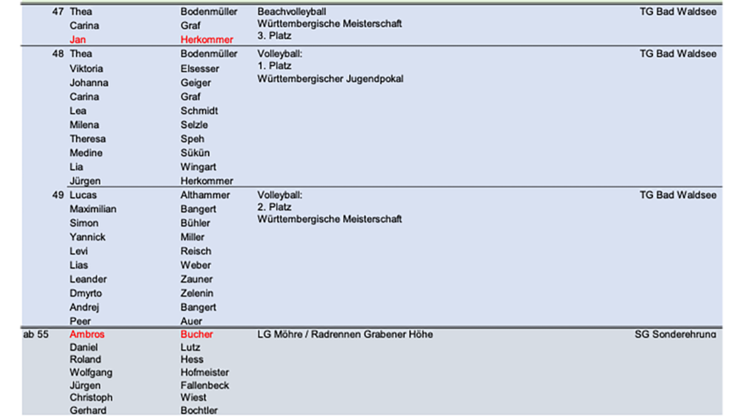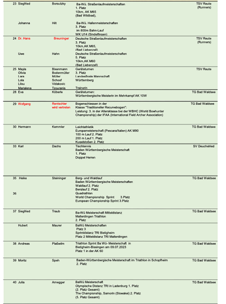 Die Namen, Sportarten und Platzierungen finden Sie im Anschluss und im PDF-Format unter Download. Viele Bilder in der Galerie.