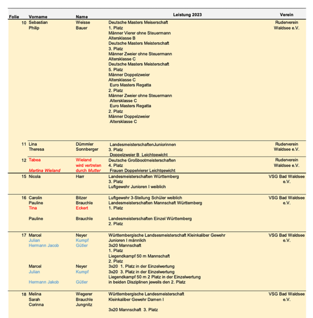 Man muss als Sportler schon was Besonderes leisten, um die Waldseer Ehrung zu erhalten. Bei Deutschen Meisterschaften mindestens Platz 6 oder bei baden-württembergischen mindestens Platz 3.