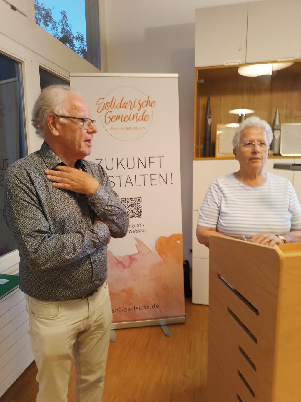 Mit Beifall vernahmen die Teilnehmer, dass Konstantin und Maria Eisele am 8. September auf Einladung von Bundespräsident Frank-Walter Steinmeier am jährlichen Bürgerfest im Park von Schloss Bellevue teilnehmen durften. Mit diesem Besuch erfuhr die Solidarische Gemeinde Reute-Gaisbeuren erneut eine exzellente Beachtung und Würdigung. Angeregt wurde diese Teilnahme letztes Jahr anlässlich des Besuchs von Ministerpräsident Winfried Kretschmann in Reute.