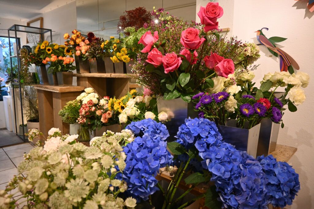 Blumen-Kraus, immer ein Schmuckstück in der Wurzacher Straße, hatte wieder besonders schön dekoriert. Neu im Sortiment sind ihre Pappbücher, aus denen sich schöne Vogelfiguren basteln lassen. Eine Wand im Geschäft ist mit einer ganz besonderen Blumen- und Blütentapete geschmückt und die Kunden können beim Warten durch elegante Tapetenkollektionen blättern. „Die Hälfte meines Schnittblumensortimentes kommt von der Reichenau“, erklärt Iris Kraus voller Stolz auf ihre regionalen Lieferanten.