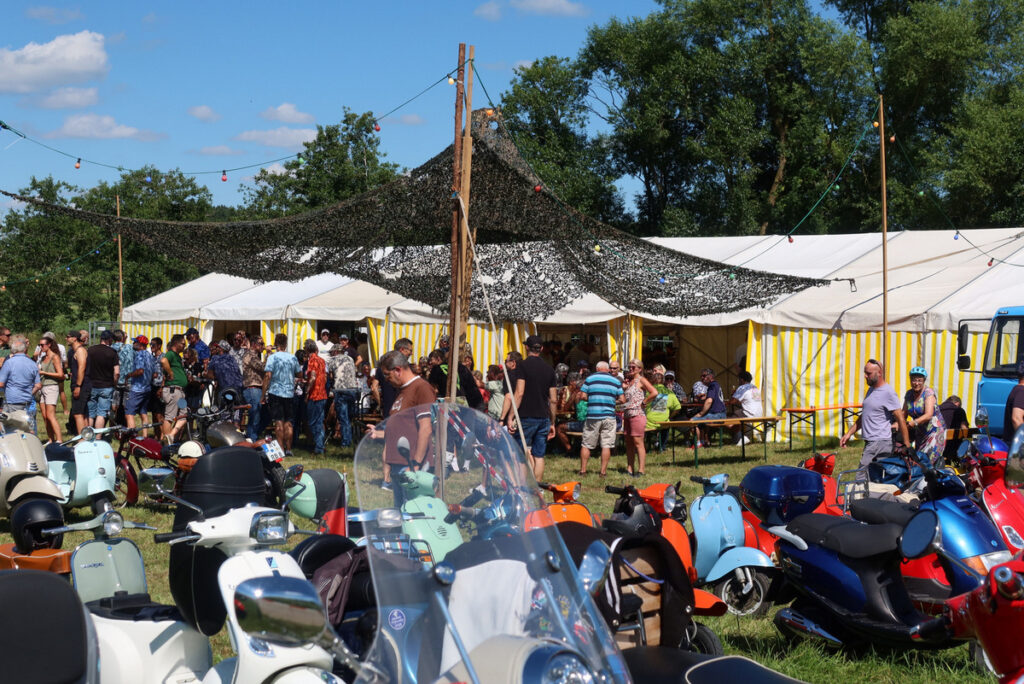 Die Festles-Macher mit Helferinnen und Helfern aus ihren Familien durften höchst zufrieden sein über das gesamte Festgeschehen auch bei diesem 18. Vespa-Festival. Diese ehrenamtlichen Event-Manager hatten alle Hände voll zu tun, um den Gästen an den verschiedenen Theken mit Getränken und Essensangeboten aufzuwarten. Auf- und Abbau des Festzeltes, Herrichten des Platzes (eine Wiese), WC-Gestellung, Parkplatzregelung, Zeltservice, Strom- und Wasserversorgung, überhaupt die gesamte Organisation seien schon recht zeitaufwändig, befanden die Verantwortlichen desVeranstaltungs-Teams. Für die Macher gab es dann auch viel Lob von verschiedensten Seiten.