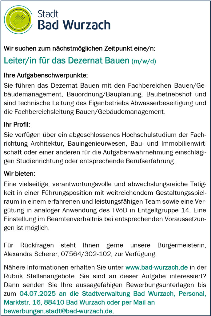 Bad Waldsee – Das Sozialamt der Stadt Bad Waldsee bleibt aufgrund von Krankheit diese Woche geschlossen. Wir bitten um Verständnis für diese vorübergehende Schließung und bemühen uns, den normalen Betrieb schnellstmöglich wiederaufzunehmen.