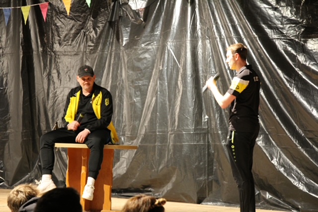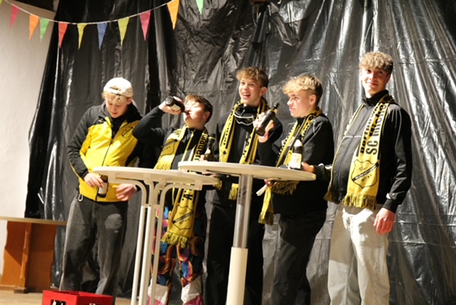 Nach der Pause, in der die Gäste bestens versorgt wurden, heizte die LK Leupolz die Stimmung erneut ordentlich an. Kaum jemand konnte noch auf seinem Stuhl sitzen bleiben; es wurde kräftig geklatscht, geschunkelt und sogar auf den Stühlen getanzt. Weiter ging es mit der AH, die in einer humorvollen Darstellung eine Therapiesitzung der Wochentage abhielt. Mit einer sportlichen Choreografie in Latzhosen setzte „Fit for Fun“ ein weiteres Highlight. Abgerundet wurde das Programm durch das Moderationsteam, das als „Siegfried & Joy“ mit Zaubertricks für Staunen sorgte, sowie durch die aktive Mannschaft, die auf humorvolle Weise über aktuelle Themen aus der Mannschaft berichtete. Für einen besonderen Höhepunkt sorgte das „Trainer-Casting“, bei dem am Ende das Publikum aktiv mit abstimmen konnte. Zum großen Finale wurden unter tosendem Applaus alle Akteure noch einmal auf die Bühne geholt und gebührend gefeiert. Im Anschluss sorgte DJ Artur mit durchgehend guter Stimmung und Partybeleuchtung für einen schönen Abend und lockte die Gäste auf die Tanzfläche.