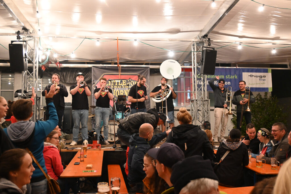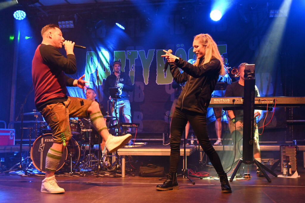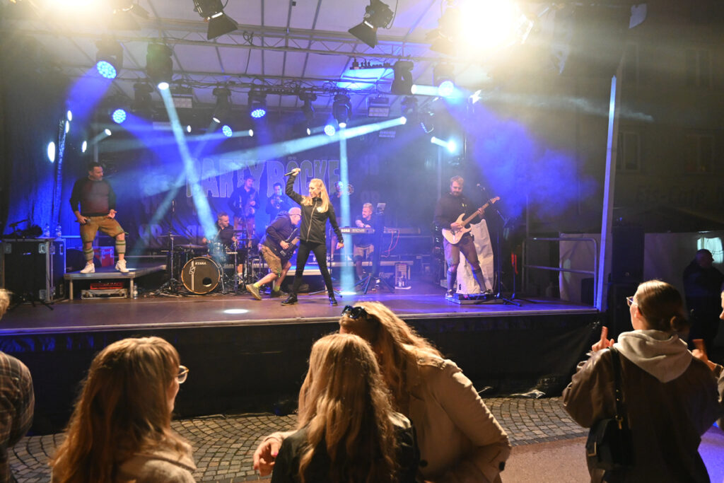 Positiv der Umzug der Showbühne in die Hauptstraße. Auf der Hochstatt war’s dadurch  luftiger, das Durchkommen besser. Vor der Bühne jetzt genügend Platz für alle, die zur Bühnenshow der „PartyBöcke“ tanzen wollten.