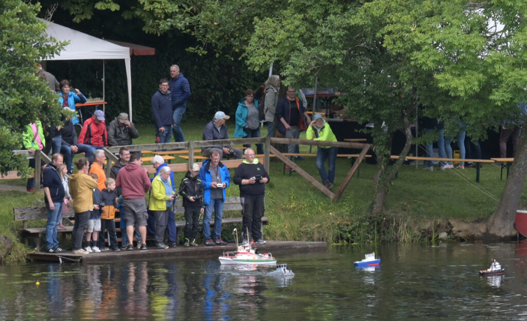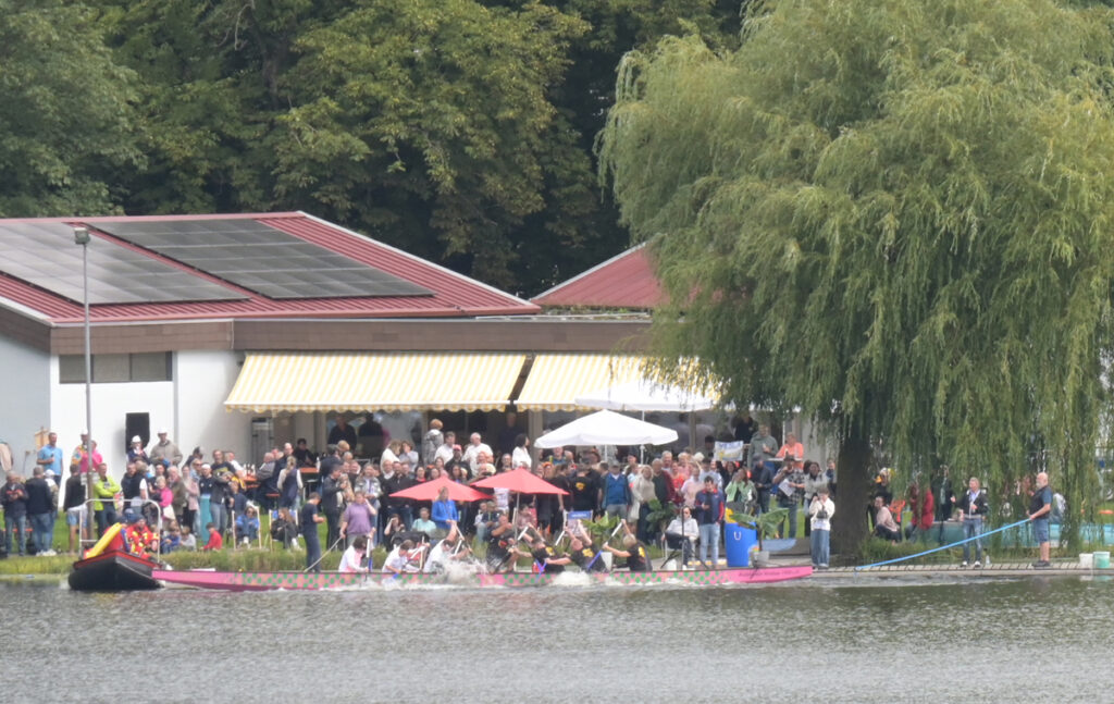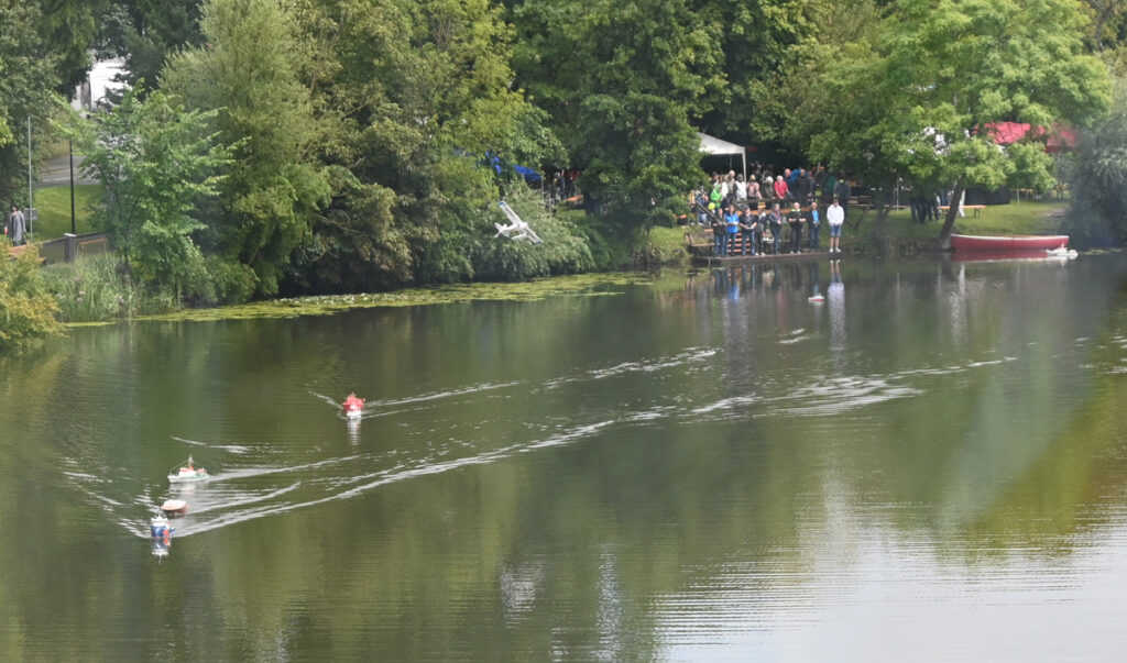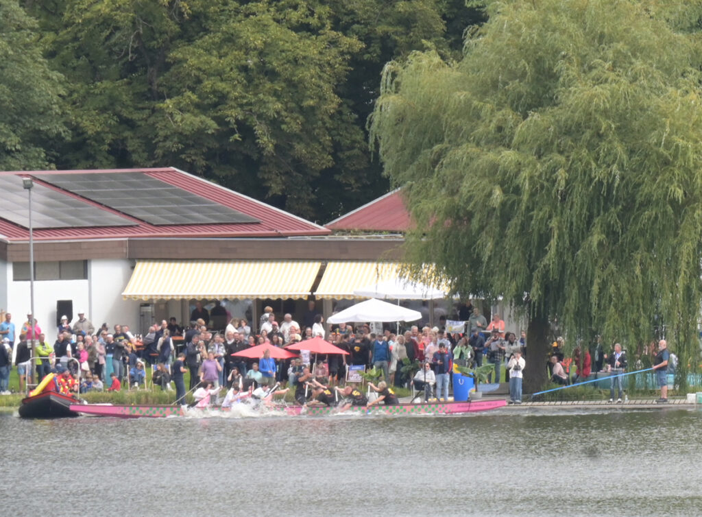 Auf dem See kämpften die Drachenbootbesatzungen gegeneinander und die Modellbauer lassen ihre Schiffe fahren und ihre Flieger fliegen. Dafür hat’s Wetter gehalten bis zu den Siegerehrungen im Bootshaus.