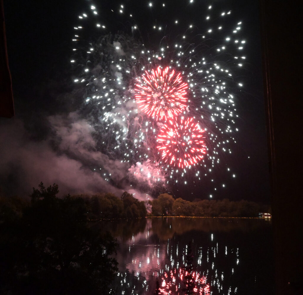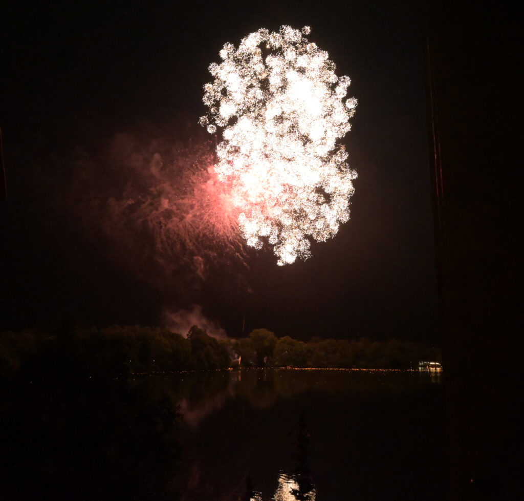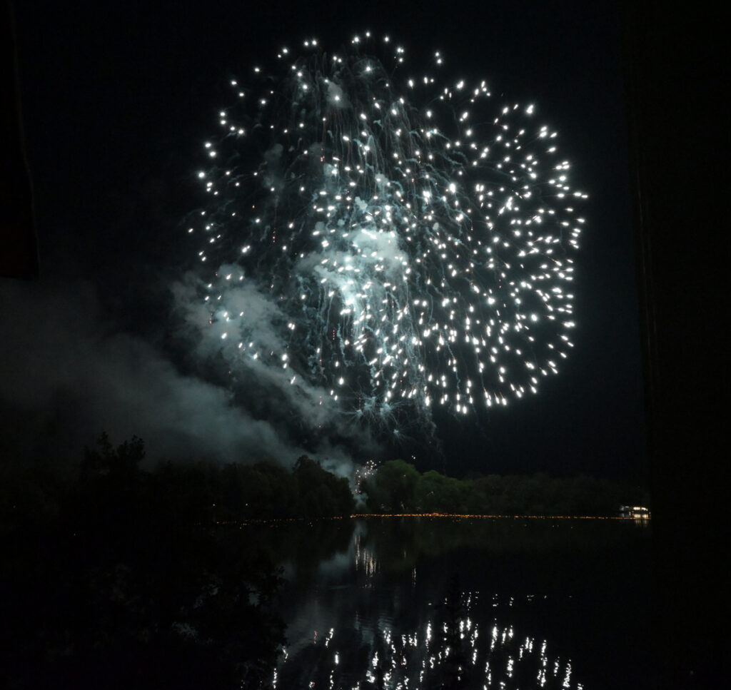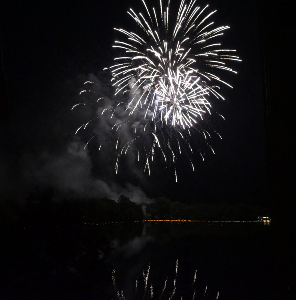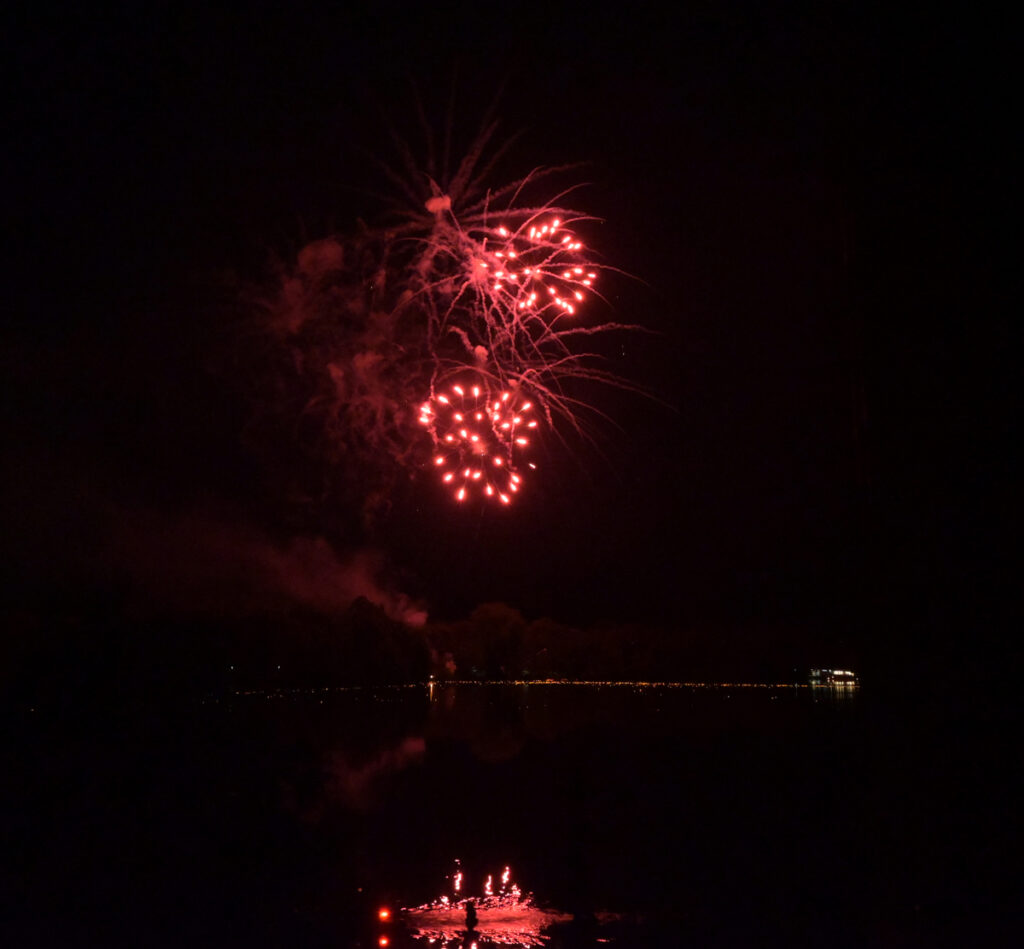 Höhepunkt und Abschluss war wie immer das Feuerwerk. Welche Musik wird gespielt? Durften die Bad Waldseer doch im Vorfeld abstimmen, welche Musikrichtung ihnen die Liebste wäre. Die Botze-Bootle schwärmten aus. Die Leuchtbecher brachten Romantik auf den See. Dann warten. Und warten. Und warten. Die Musik schien sich in einer Endlosschleife gefangen zu haben. Und warten. Und – zwei Raketen stiegen in die Luft mit Knall und Krach und Fauch. Und – warten. Sicher hatten die Feuerwerker hinterm See alle Hände voll zu tun. Aber dann. Die Musik erwachte aus der Dauerschleife. Das farbige Spektakel wurde am Himmel abgebrannt. Es war wie immer: einfach toll.