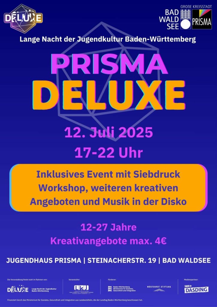 Ein besonderes Highlight ist die „DELUXE – Lange Nacht der Jugendkultur“ am 12. Juli von 17.00 bis 22.00 Uhr. Inklusiv, offen für Jugendliche von 12 bis 27 Jahren und voller kreativer Workshops – ermöglicht durch die Landesvereinigung Kulturelle Jugendbildung Baden-Württemberg und weitere Förderer.