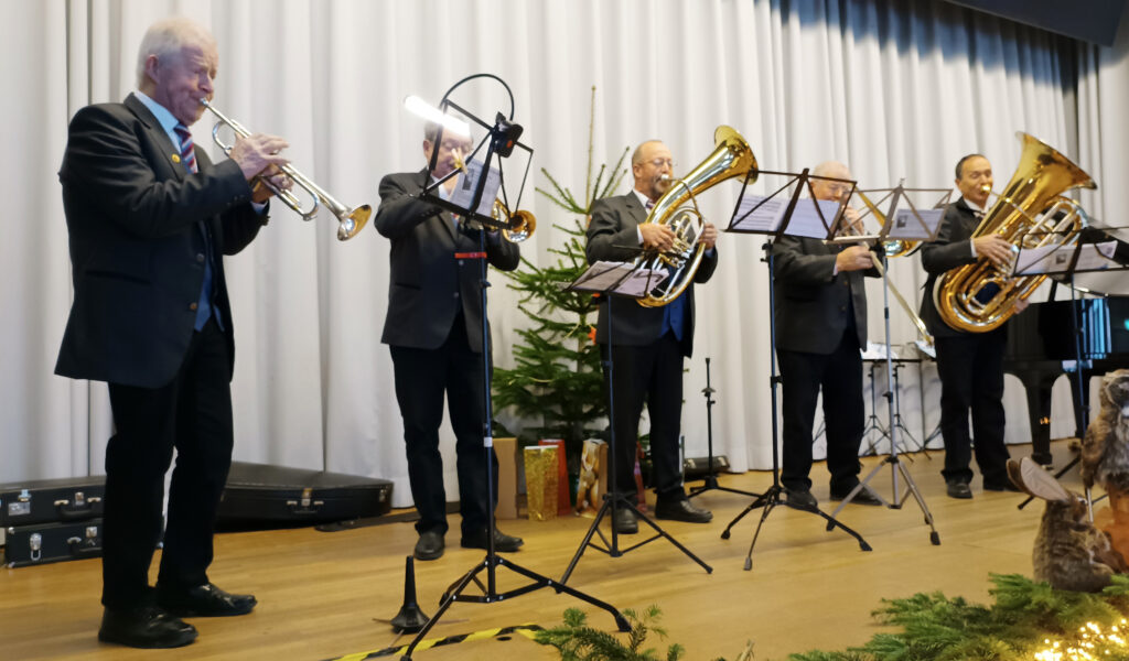 Mit stimmungsvollen Liedern eröffnete ein Bläserensemble der Stadtkapelle die Feier (Bild; Leitung: Franz Gapp). Unter Begleitung am Klavier von Chorleiter Hermann Hecht mit dem Lied „Mache dich auf und werde Licht“ begrüßte das Leitungsteam mit vorweihnachtlichen, meditativen Texten und Gedanken die Gäste der Adventsfeier.
