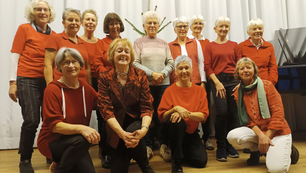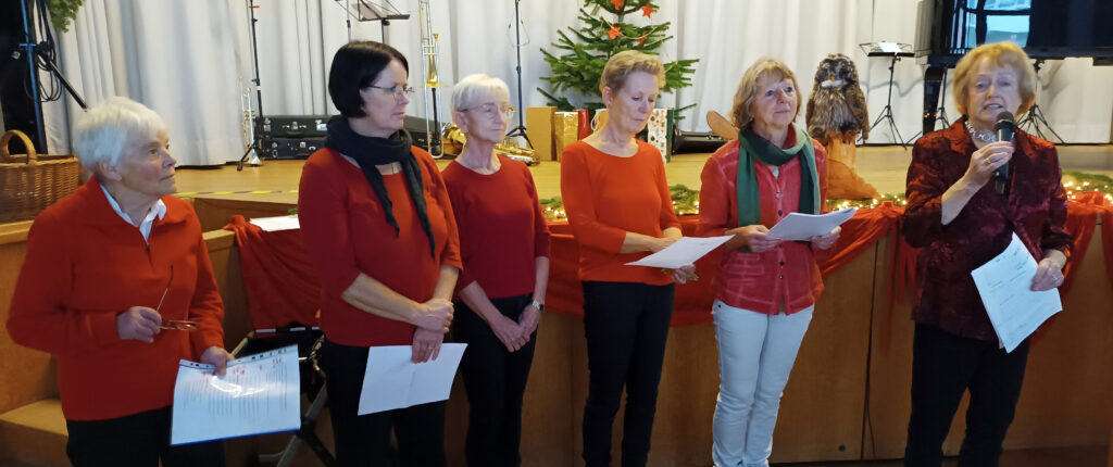 Dazwischen sang die Adventsgesellschaft gemeinsam weihnachtliche Weisen, begleitet von Hermann Hecht am Klavier.