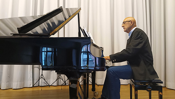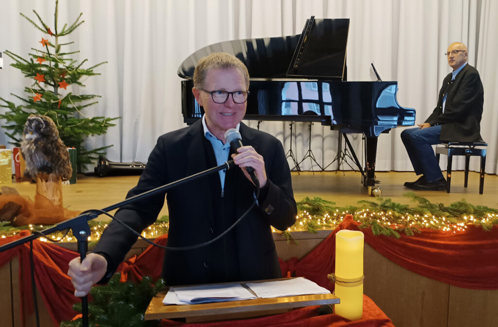 Hermann Hecht, Organist an St. Peter, begleitete am Flügel weihnachtliche Weisen und trug ein instrumentales Solostück vor, ein Ohrenschmaus.