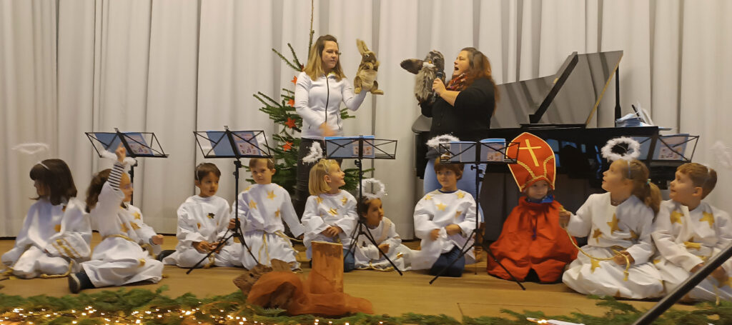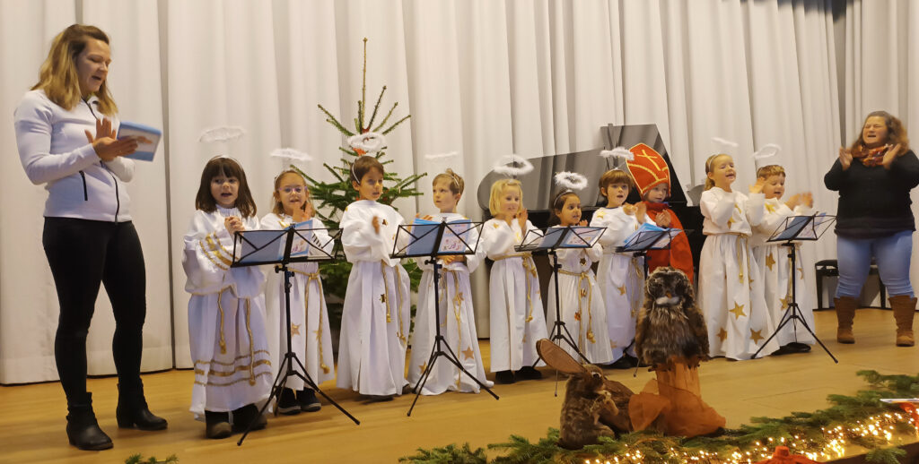 Mit Geschichten und Liedern zum Advent erfreuten die Kinder des Evangelischen Kindergartens „Unterm Regenbogen“ die Adventsgäste und ernteten großen Beifall. Angeleitet wurden die Kinder von den Erzieherinnen Diana Schwarz, Eugenie Franz und Martina Spähn.