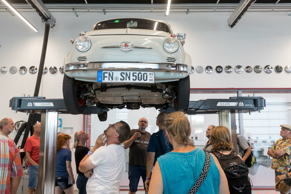 Passend zum Motto wurde in der Museumswerkstatt italienische Fahrkultur zelebriert. Neben einem aktuellen Ferrari 458 und seinem „Großvater“ 328 GTS, informierten Andreas Krattenmacher und Thomas Bendel zum Thema Vespa. Sportlich ging es dann bei den Tipps zum Thema Alfa Romeo zu. Moritz Ludescher demonstrierte an einer Alfa Giulia zahlreiche Möglichkeiten, mit wenig Aufwand möglichst viel Leistung aus dem Fahrzeug zu kitzeln. Einem weiteren italienischen Kultklassiker widmete sich Ralf Bendel: dem Fiat 500.