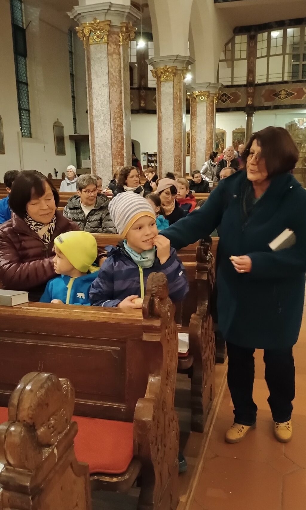 Nach dem Lied aus dem Gotteslob „Wo Menschen sich vergessen“ und den Fürbitten brachten Wolfgang Pfefferle und Clemens Frede zwei nachdenkliche Kurzgeschichten mit der Überschrift „Brot in Deiner Hand“ zum Vortrag. Zum Abschluss des Gottesdienstes verteilten die Vorstands-Mitglieder an alle Kirchenbesucher frisch-gebackene kleine Brote. „Respekt vor so viel ehrenamtlichem Engagement, auch ich möchte mit einer Mitgliedschaft der Suppenküche meine Solidarität zum Ausdruck bringen“, lautete die Aussage einer Besucherin beim Verlassen der Kirche.