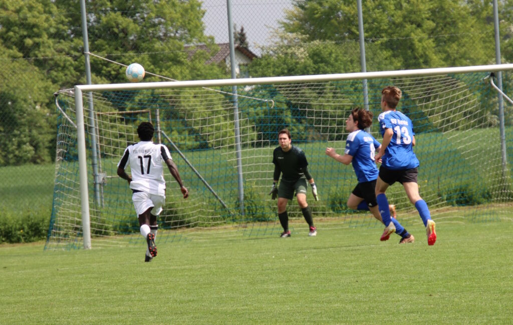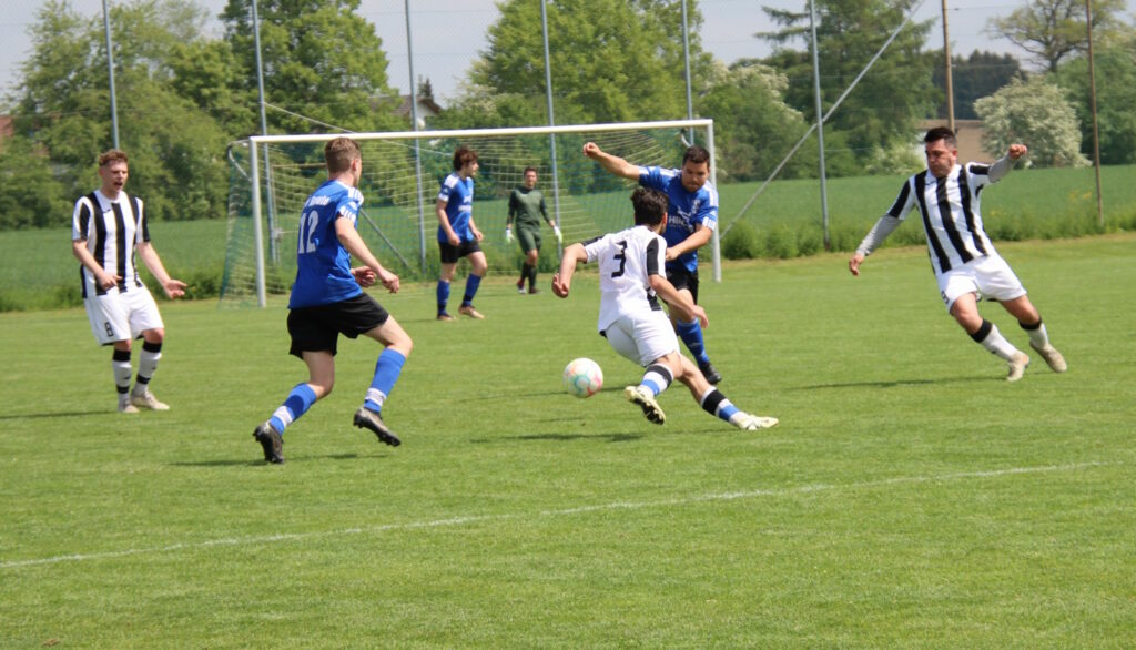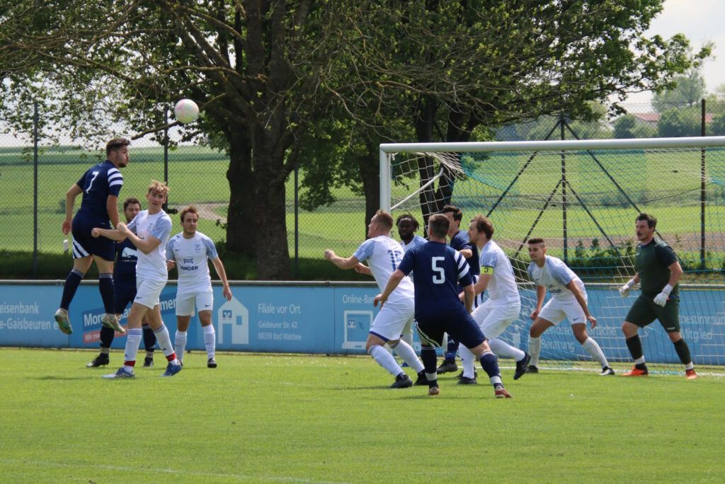 Die Gäste aus Bad Wurzach zeigten im Frühschoppenspiel am Vatertag schnell, warum sie deutlich an der Tabellenspitze stehen. Der Ball lief flüssig durch die gegnerischen Reihen und die Reutener hatte vor allem Defensivaufgaben gegen die starke Offensive zu erledigen. Das machten die Gastgeber gut zwanzig Minuten lang auch recht ordentlich, ehe dann aber Matthias Müller am langen Pfosten mit seinem 31.Saisontor zur Gästeführung abstauben konnte.