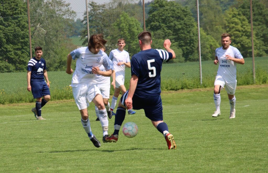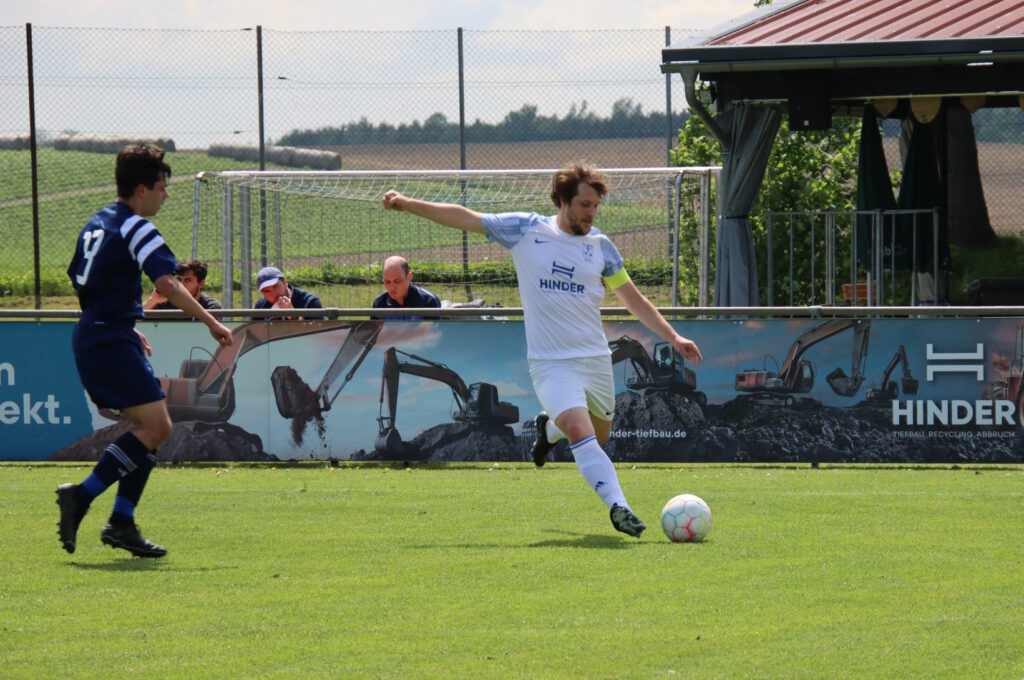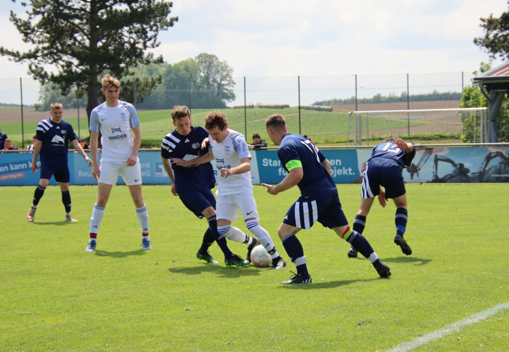 Nach dem Seitenwechsel hatten die Hausherren den Wind auf ihrer Seite und waren nun besser in der Partie. Dennoch tat sich zunächst nicht allzu viel im vorgezogenen Spiel am Vatertag – die Partie blieb auch weiterhin eine zähe Nummer. Mit den dahin rinnenden Minuten kam aufgrund der Spannung und Bedeutung der Begegnung immer mehr Emotionen und Hektik ins Spiel. Gut zwanzig Minuten vor Spielende musste ein Gästespieler per Ampelkarte vom Feld, die Gäste hatten es in der Schlussphase also noch schwieriger den Rückstand zu egalisieren. Gut eine Viertelstunde vor Spielende hatte Spielertrainer Jonas Klawitter die große Chance auf den zweiten Treffer, doch parierte der Gästekeeper klasse.
