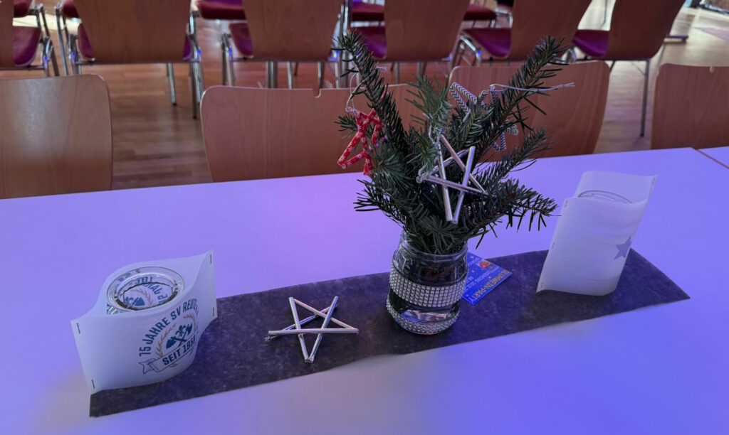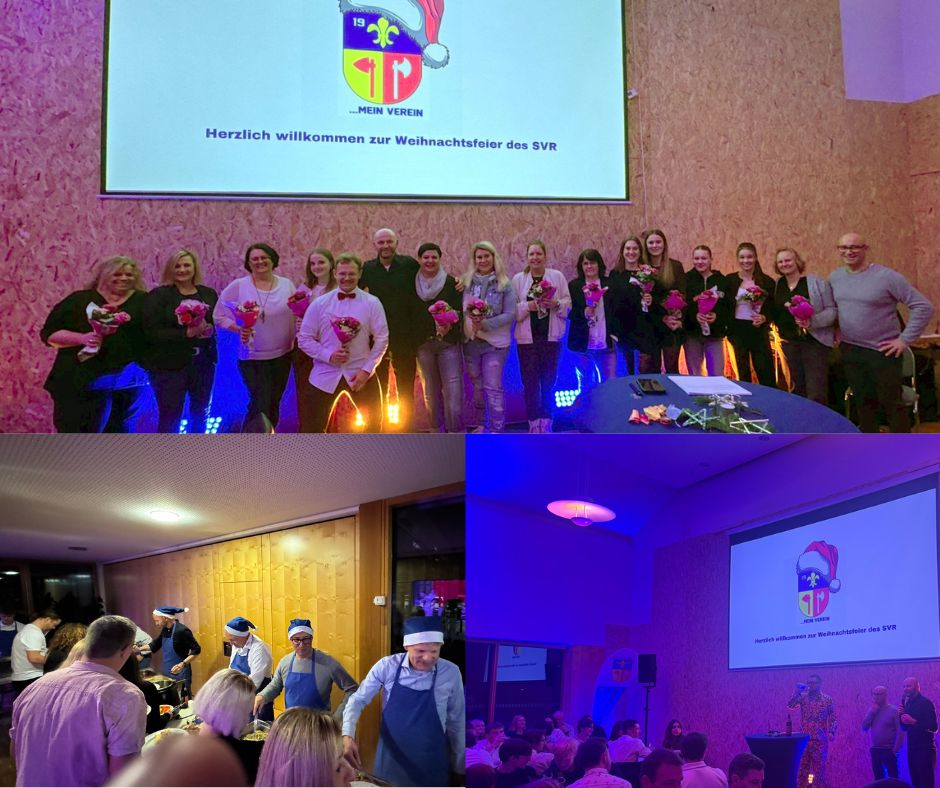Reute – Eine gelungene Weihnachtsfeier am Samstagabend (20.12.) im Gaisbeurer Dorfgemeinschaftshaus rundete das Jubiläumsjahr des SV Reute ab. Die aktiven Herren-, Frauen-, AH- und A-Juniorenteams sowie Funktionäre und Helfer feierten gemeinsam bei leckerem Essen, tollen Programmeinlagen und Musik.