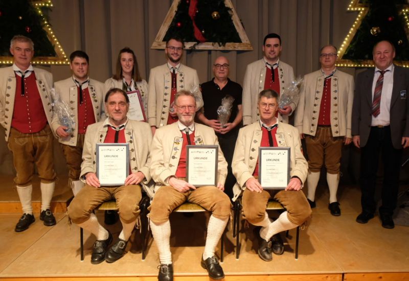 Dieselbe Ehrung zu Teil wurde auch Alois Gaupp, genannt „dr Wiese“. Seine gleichnamige Wirtschaft in Hummertsried ist in ganz Oberschwaben ein Begriff und nach den Proben die Anlaufstelle für die Musiker. Er spielt das Erste Tenorhorn. Trotz der Arbeit in der Gastwirtschaft ist er einer der besten Probenbesucher.