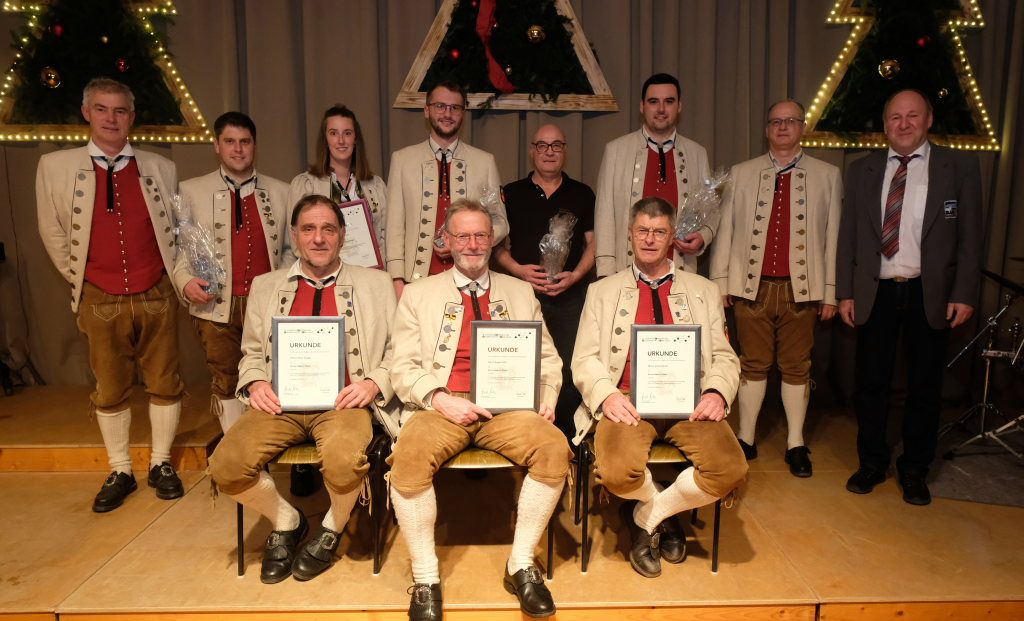 Dieselbe Ehrung zu Teil wurde auch Alois Gaupp, genannt „dr Wiese“. Seine gleichnamige Wirtschaft in Hummertsried ist in ganz Oberschwaben ein Begriff und nach den Proben die Anlaufstelle für die Musiker. Er spielt das Erste Tenorhorn. Trotz der Arbeit in der Gastwirtschaft ist er einer der besten Probenbesucher.